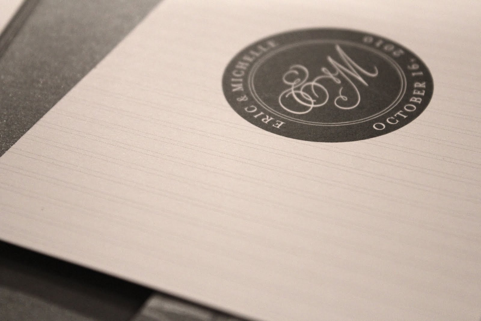 michelle + eric were married this past october in philadelphia at the fabulous union league. they wanted their invitation package to have some of the elements from their kite save the dates, with a more formal, elegant feel. playing along with their historic philadelphia theme, we created a wax seal with their monogram that was used to hold a metallic, patterned pocketfolder closed. when you opened the folder, you were welcomed by william penn on their letterpressed invitation. we worked with a fabulous new calligrapher, katie newman, from belles lettres designs. she addressed each envelope with a beautiful, antique script in charcoal ink.